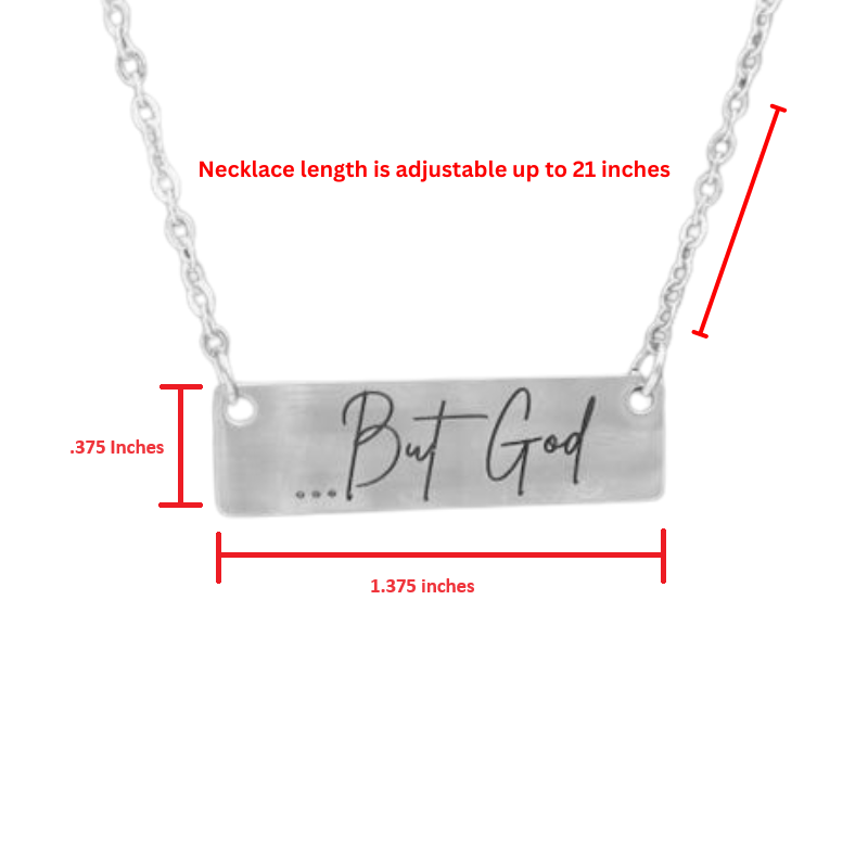 Celebrate the transformative power of faith with our exquisite stainless steel, rose gold finished, or 18k gold finished necklace, engraved with the uplifting phrase "...But God". This elegant piece is a testament to the pivotal moments when divine intervention changes the course of your story.